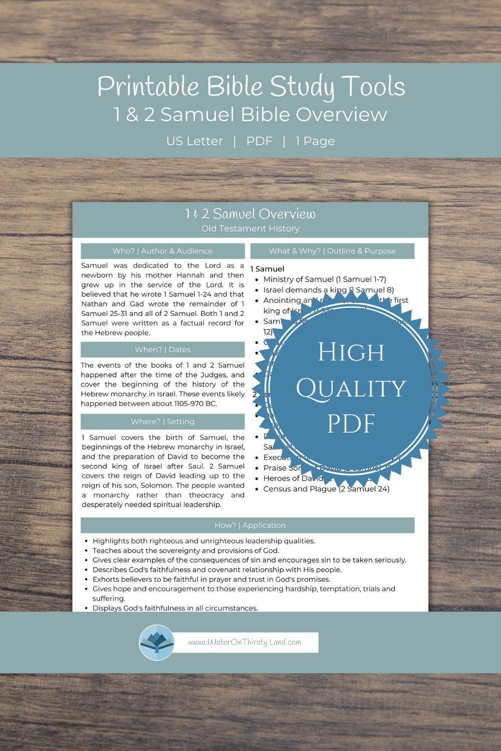 Grab the printable version of our 1 & 2 Samuel Overview to print for easy referencing in your Bible studies.
