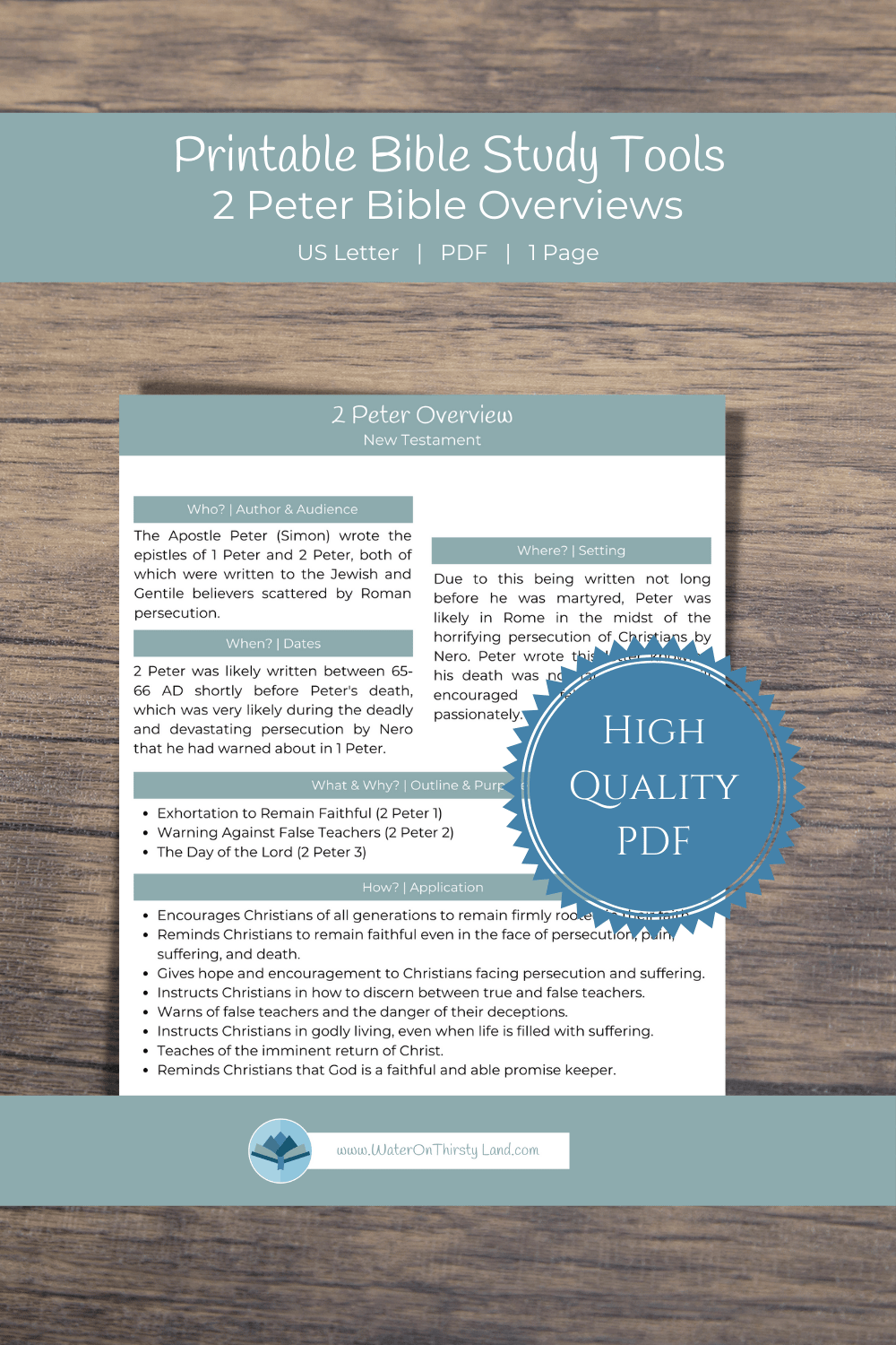Grab the printable version of our 2 Peter Overview to print for easy referencing in your Bible studies.