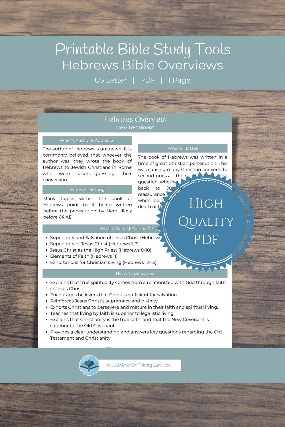 Grab the printable version of our Hebrews Overview to print for easy referencing in your Bible studies.